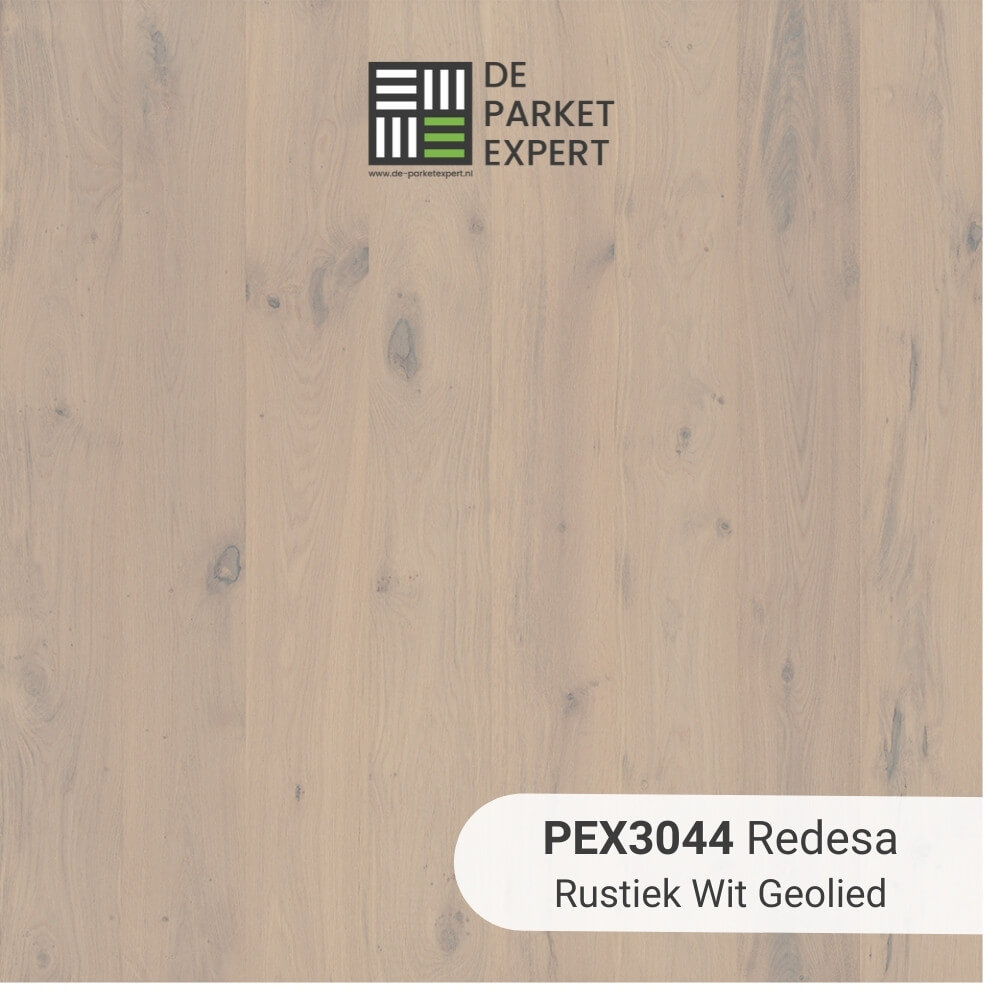 De prachtige Redesa Rustiek Wit Geolied is een parketvloer binnen de Basic Deal. De rustieke eiken toplaag van 3mm is afgewerkt in wit olie. De planken hebben een formaat van 1,20m lang en 15cm breed. Het voornaamste eigenschap van de Redesa vloeren zit 'm in het kleurenpalet. Kenmerkend is de unieke schakeling tussen lichte en donkere planken. ook bijzonder aan deze vloer is de lage warmteweerstand. Hierdoor is de vloer erg geschikt bij vloerverwarming.